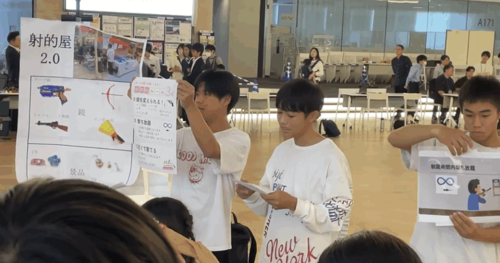 今年で3年目で、今年は、「モノ」ではなく「コト(サービス)」を販売するということで4月から企画を進めてまいりました。8月のロボライズ祭りでは、実際に考えたコンセプトをもとに、「射的」を実施し250名近くに方に遊んでいただきました。