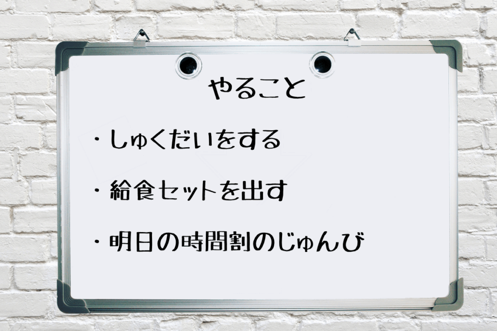 ホワイトボードやチェックリストなどで、1日の流れを目で見てわかる形にすることで、子どもが自分で時間を管理する感覚を育てられます。